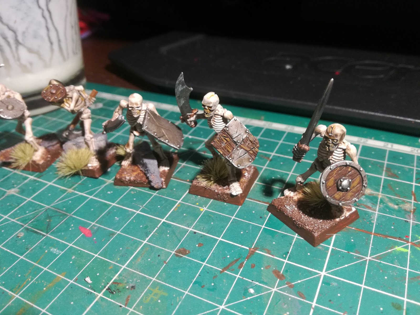 Motywacja musi być a że pojawiła się opcja pojawienia na turnieju kwietniowym to zaczynam malować oraz uzupełniać wyswigiem amie. Przede mną koło 50 szkieletów, 5 psiaków, 10 black knights zaczynam od szkieletów dwie nocki i prawie skończona pierwsza 10-tka